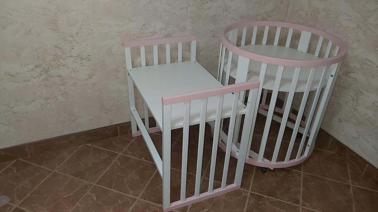 Дитяче ліжко трансформер +матрасик трансформер+ маятник Біло-рожевий